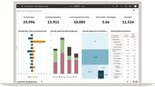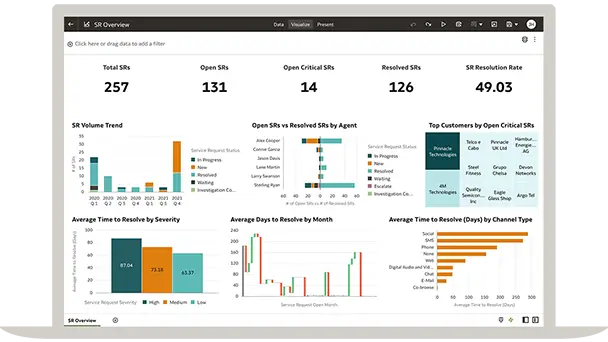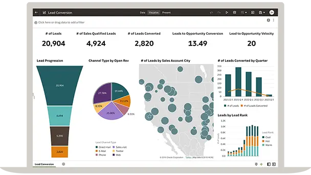 Oracle Fusion CX Analytics helps organizations achieve their full revenue potential by combining sales, marketing, and service data in a unified analytics solution.