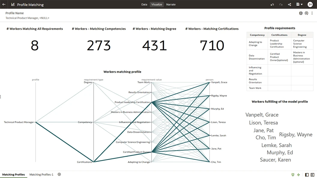 Easily find people that match model profile requirements. Assess workers' performance to determine if there is a skill set match to specific jobs or positions.