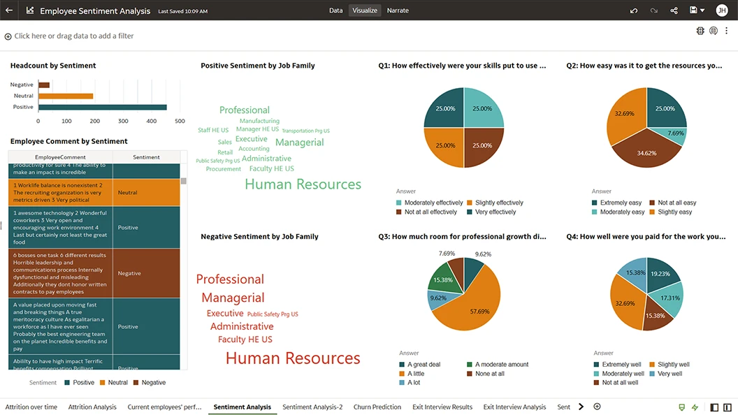 Advanced text and graph analytics provide a deeper understanding of sentiment, helping inform decisions that improve the employee experience.