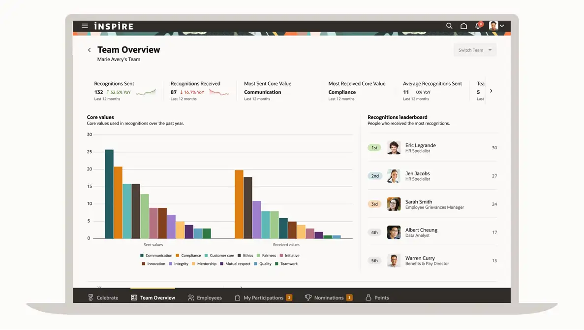 Team recognition dashboard