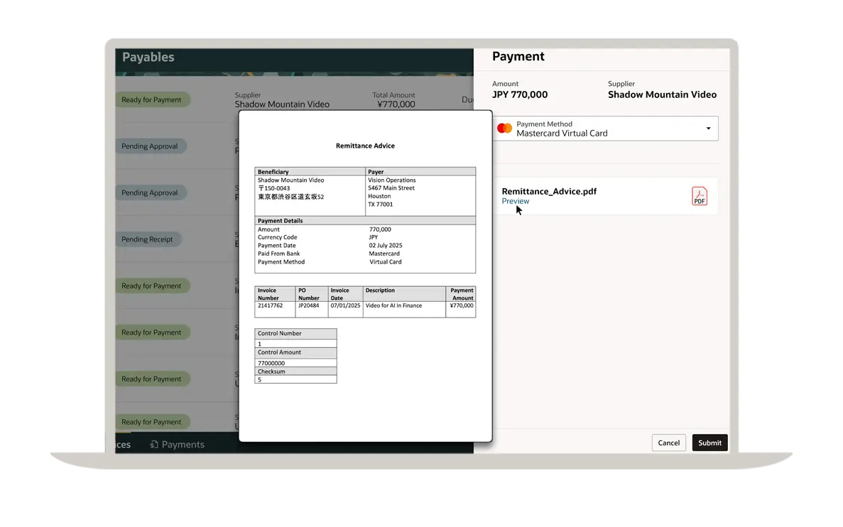ראו כיצד סוכן Document IO פועל ב-Oracle Fusion Cloud ERP, מסייע בייעול תהליכי רכישה ותשלום ומדגים את העתיד של פעולות ללא מגע.