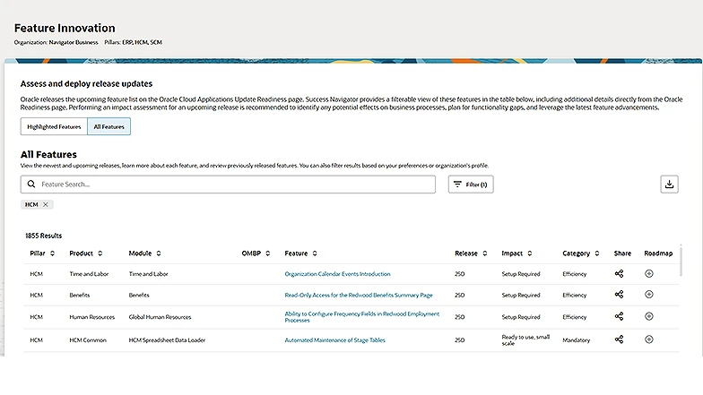 - Access out-of-the-box Oracle Modern Best Practice recommendations and Starter Configurations, all personalized for your organization, to reduce implementation effort and increase speed to value.