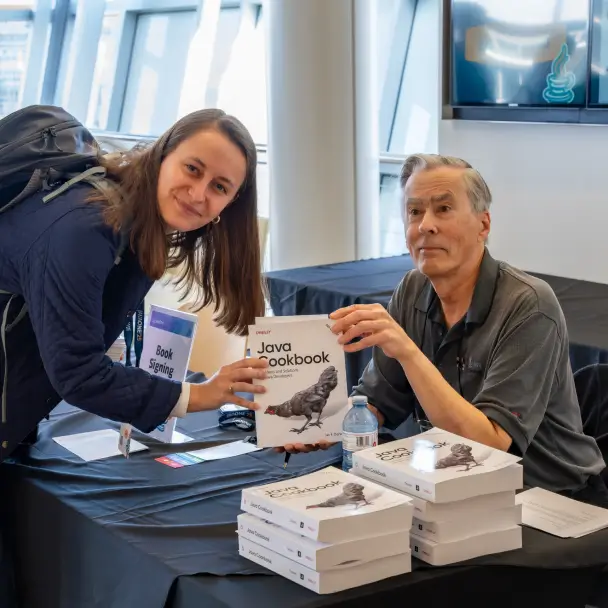 Grab a free signed copy and a quick chat with a JavaOne speaker during our casual book-signing session on Thursday. Titles range from fresh releases to timeless references, all bundled with firsthand insight. Quantities are limited, so swing by early and add a collector’s piece to your shelf soon—enjoy.