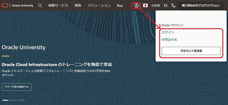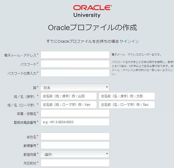 Oracle University が提供する研修サービス(認定資格制度を含む)をご利用いただくためには、お申込者の Oracle.com へのユーザー登録が必要です。