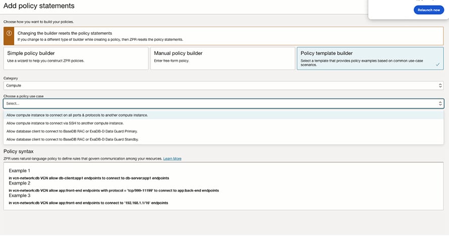 OCI ZPRポリシーを記述するには、次のいずれかのオプションを使用できます。