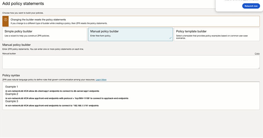 To create OCI ZPR policy, select “Policies” from the left-hand ZPR menu, then click “Create policy.” The landing page lists the existing policies in your tenancy.