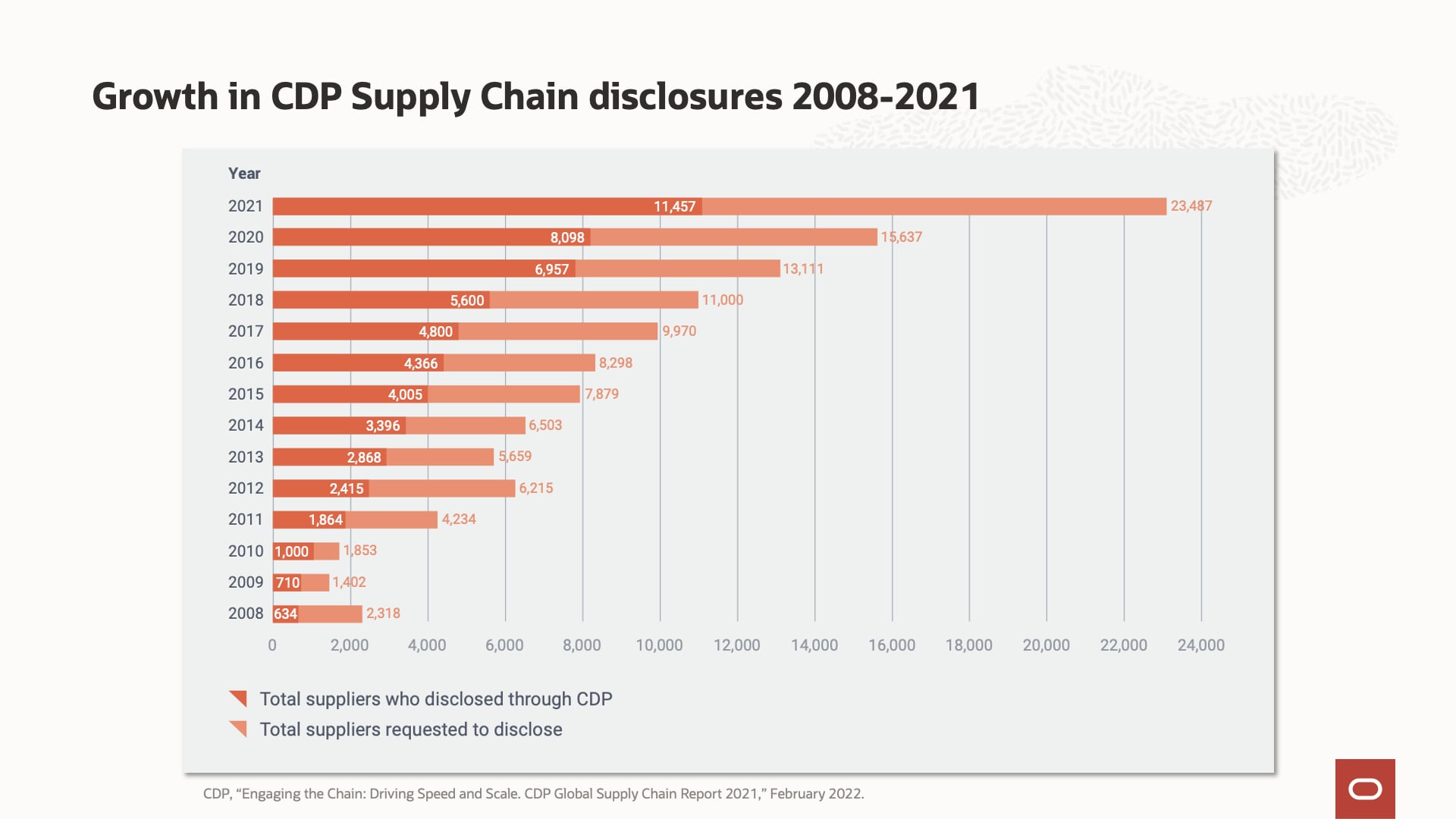 Overall, CDP reported growth of 41% in supply chain disclosures compared to the previous year.¹