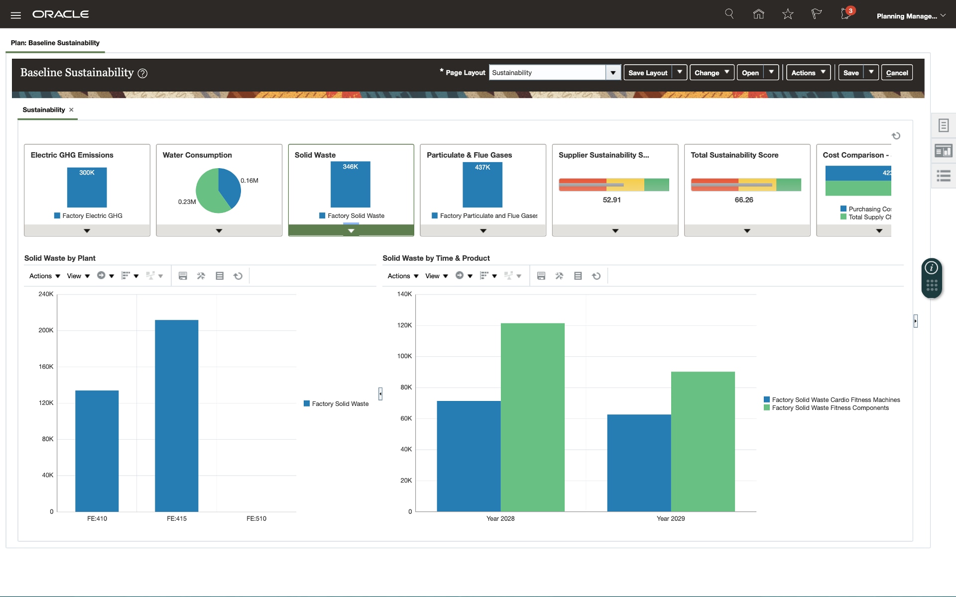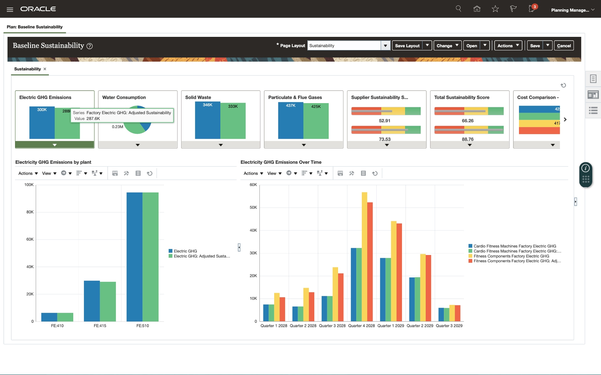 Oracle Fusion Cloud Sales and Operations Planning enables you to integrate, monitor, and improve your sustainability performance.