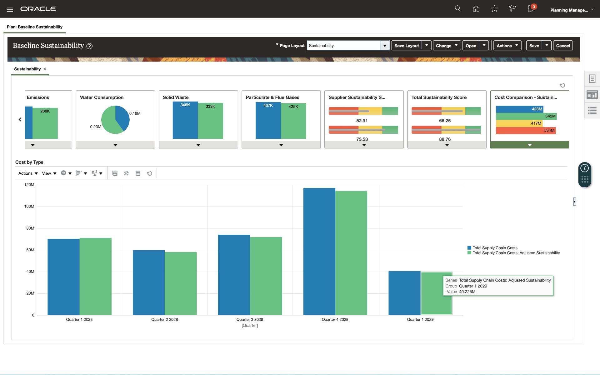 Accelerate your sustainability initiatives by incorporating sustainability metrics across your supply chain with Oracle Fusion Sales and Operations Planning.