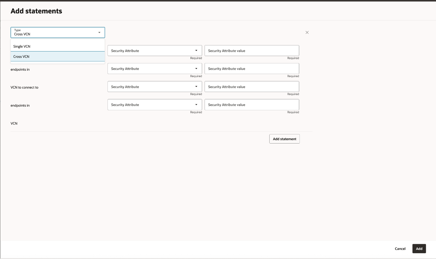 When you enable OCI ZPR, it creates a security attribute namespace in the tenancy called “Oracle-zpr” that includes an example security attribute named “Sensitivity.” You can use this default namespace or create additional namespaces by selecting “Security Attribute Namespace” from the ZPR menu, then selecting “Create Security Attribute Namespace.” You can use the filters on the landing page to list the namespaces in your tenancy.