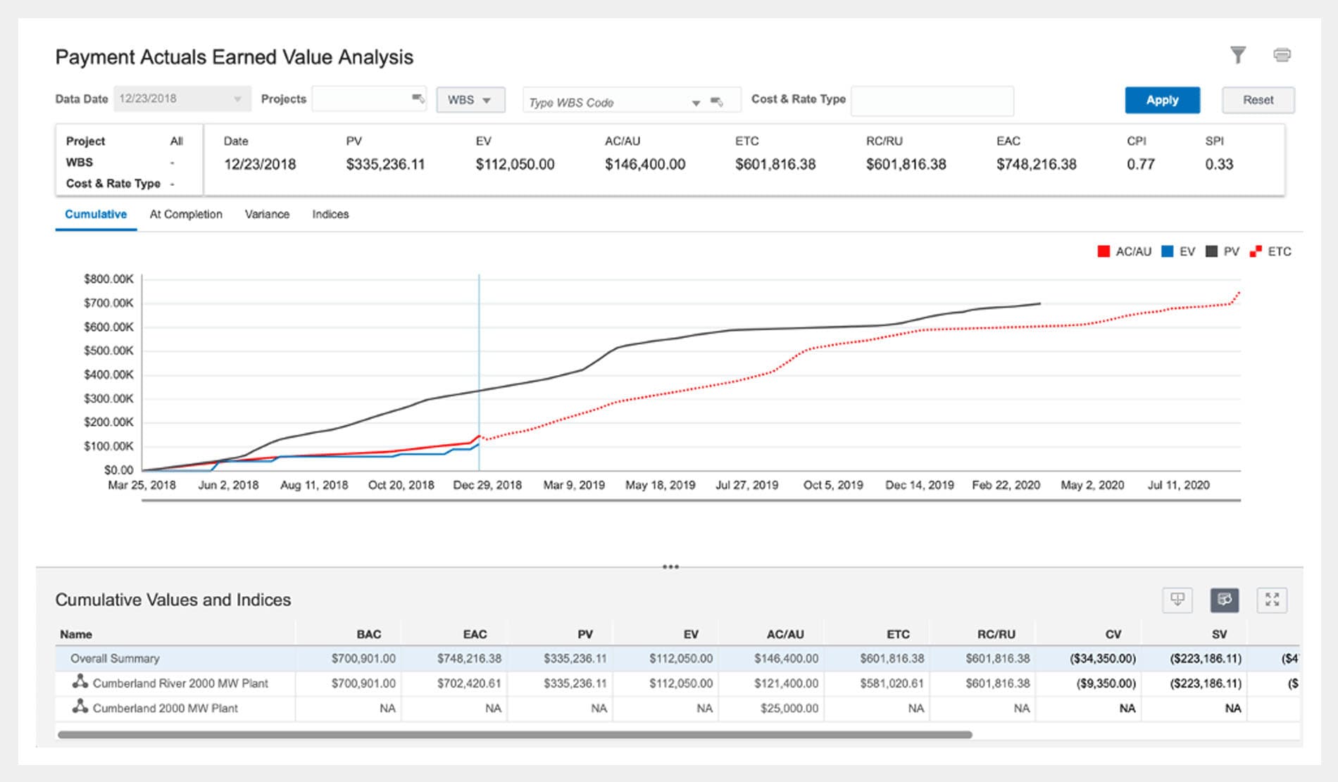 Oracle Construction and Engineering 作為專案和專案組合管理解決方案的領導者,深知組織在 EVM 推行上的長期挑戰 (Primavera 創始人之一更是 EVM* 領域的權威作者)。同樣重要的是,我們瞭解其推動更佳專案成果的潛力。Oracle 的 EVM 解決方案整合了成本、排程和規劃資料,並透過強大的分析功能擴展洞察力。我們的解決方案為 EVM 流程帶來了新的洞察力和效率。