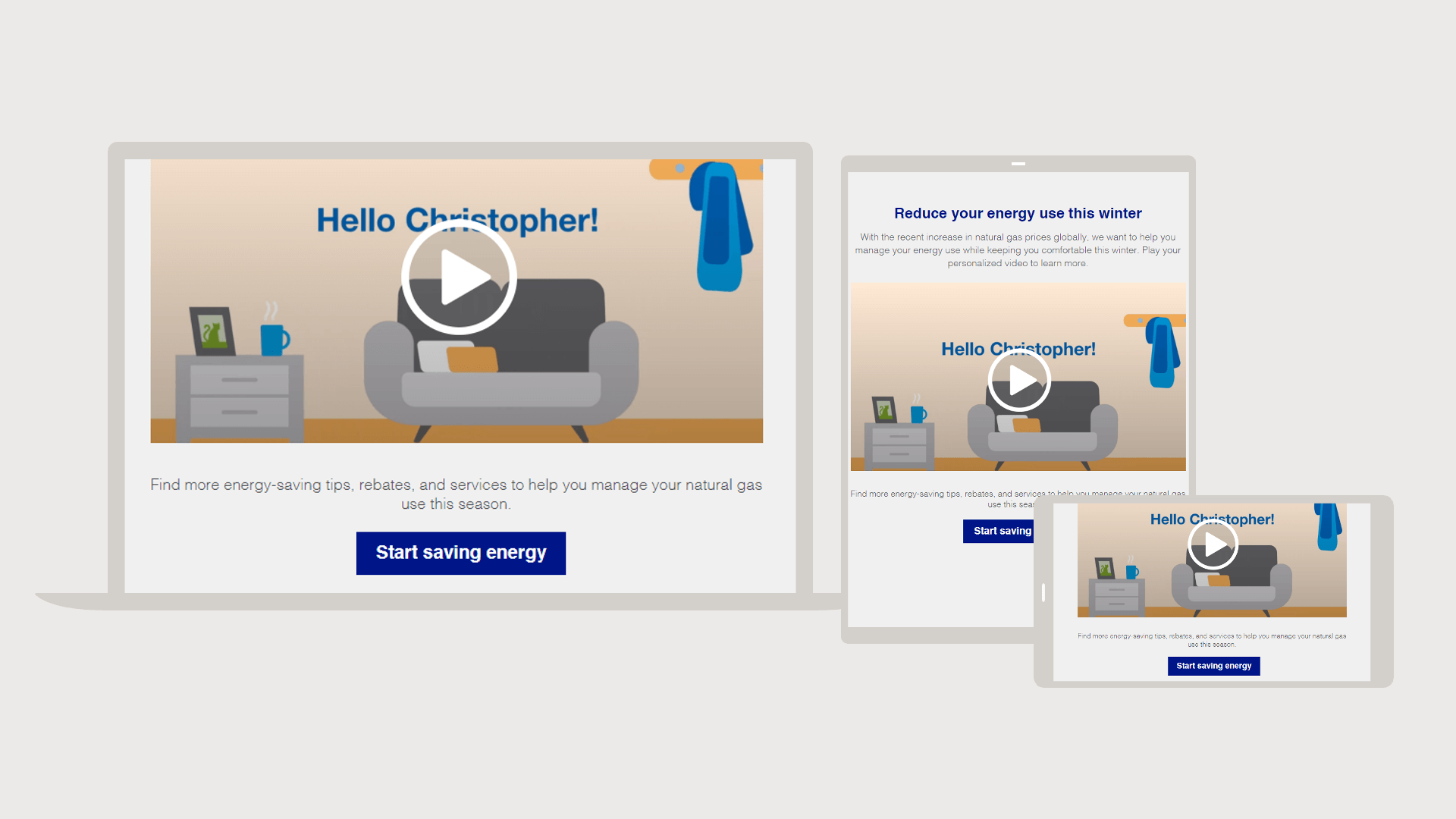 Raise awareness of new customer programs and technologies, such as heat pumps and thermostat devices, with fun and engaging personalized animations that encourage program adoption and better energy-saving habits.
